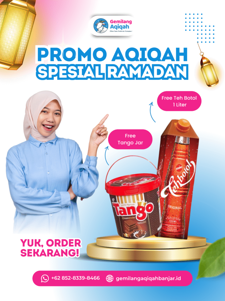 Mau AQIQAH tapi gak mau ribet ?Gemilang Aqiqah solusinya Dapatkan Benefit dari kami : Bapak Ibu tidak sempat menyaksikan proses pemotongan hewan karena sibuk?Jangan khawatir ! nanti team kami bantu untuk dokumentasikan ya (Contoh ada di halaman Galery) Klik tombol dibawah untuk Dapatkan Promo PESAN SEKARANG